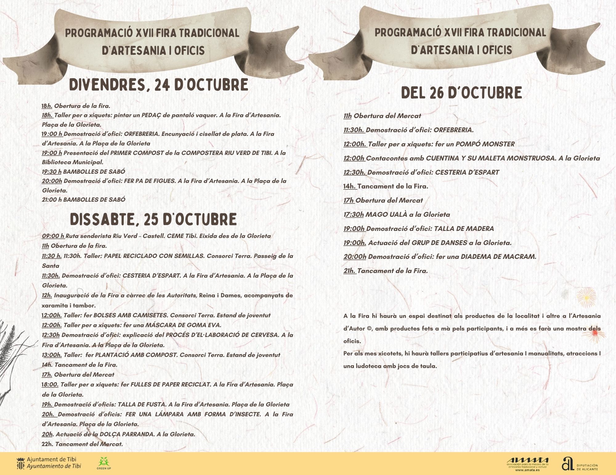 Descubre todo el programa de actividades de la Fira d’Artesania i Oficis de Tibi
